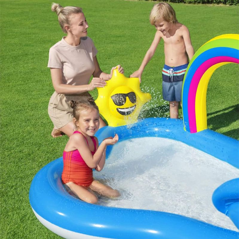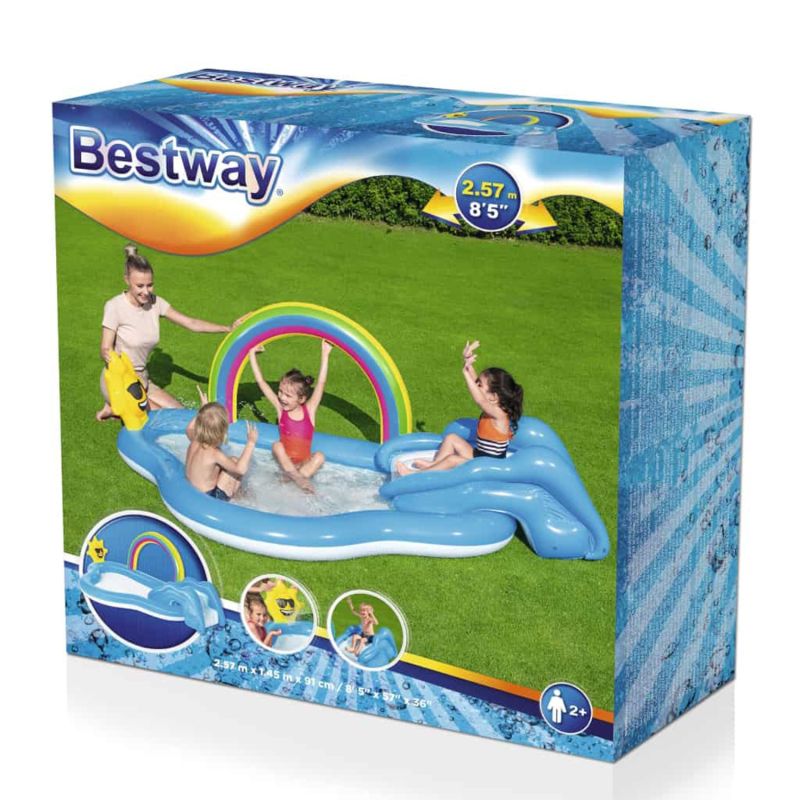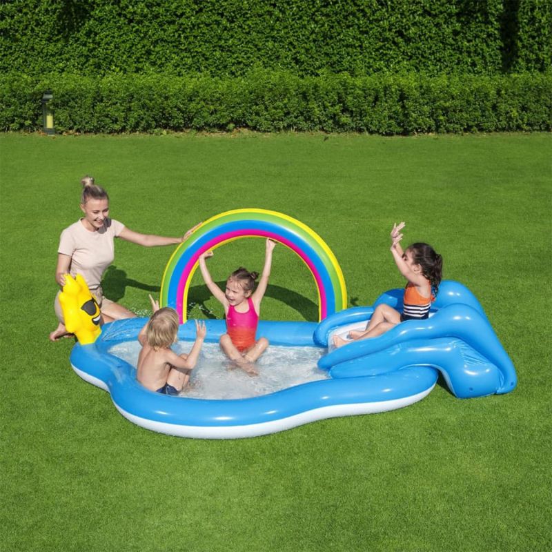Profitez simplement de regarder les plus petits dans la maison dans un endroit très rafraîchissant et amusant grâce à ce centre de jeux arc-en-ciel avec toboggan de Bestway !
