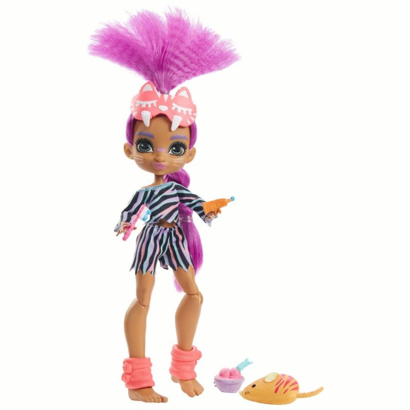 Les poupées Cave Club Pyjama Party remontent le temps pour leur toute première soirée pyjama, et vous êtes invité! Roaralai va vous faire vivre des histoires fantastiques, avec ses cheveux fluo, son pyjama à motif animal et son masque pour dormir assorti. Les trois accessoires à thème permettent de planter le décor de votre soirée pyjama d’exception et laissent la place à des possibilités infinies! Les enfants de 4ans et plus peuvent imaginer la vie de leur poupée Cave Club Pyjama Party préférée ou toutes les collectionner pour que la bande soit au complet. Articles vendus séparément. Certains produits peuvent ne pas être commercialisés. La poupée ne tient pas debout toute seule. Les couleurs et les décorations peuvent varier.