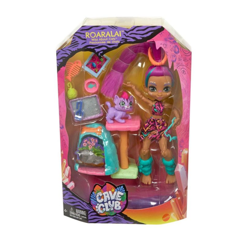 Découvrez le Club des Cavernes, un groupe d’enfants de la Préhistoire à la personnalité décoiffante et très en avance sur leur temps! Avec les poupées et coffrets Club des Cavernes, les enfants peuvent explorer tout un monde d’aventures extraordinaires avec leurs personnages préhistoriques préférés, comme Emberly et Roaralai. Chaque coffret Club des Cavernes inclut une poupée au look sauvage, un animal de compagnie préhistorique et des accessoires thématiques. Vous pouvez aider Roaralai à s’occuper de son bébé tigre à dents de sabre ou aider Emberly à préparer le tout premier barbecue de l’histoire. Avec les poupées et coffrets Club des Cavernes, les enfants peuvent voyager au temps de la Préhistoire pour explorer tout un monde d’aventures! Les enfants à partir de 4ans peuvent imaginer la vie de leur enfant des cavernes préféré ou collectionner tout le groupe pour des histoires encore plus riches. Articles vendus séparément. Certains produits peuvent ne pas être commercialisés. Les couleurs et les décorations peuvent varier.