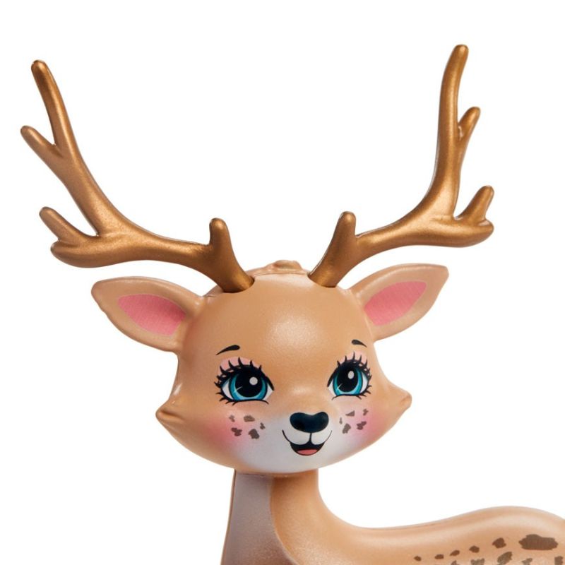Découvrez les Enchantimals, un groupe de personnages adorables qui partagent un lien spécial avec leurs animaux favoris! Cette famille Enchantimals de la collection La Vallée Enneigée comprend la poupée Rainey Renne, la figurine Marathon et deux bébés rennes, ainsi qu’un sachet mystère contenant 3accessoires. Rainey Renne porte une tenue d’hiver à la mode. Les figurines rennes ont chacune leur propre look. Pour une surprise gourmande, ouvrez le sachet mystère qui contient 3carottes! Les enfants vont adorer recréer le lien si spécial qui unit cette famille. Les couleurs et les décorations peuvent varier.