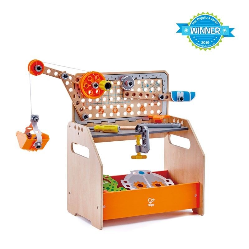 • Etabli scientifique avec plus de dix expériences • Idéal pour les plus jeunes grâce à des éléments adaptés aux enfants, un assemblage facile et des instructions claires • Contient tout ce qu'il faut pour réaliser dix expériences et produire les mains attrape-tout, une tête de robot, une éolienne, une grue, un téléphérique, un sonneur de cloche, une grenouille grimpeuse, une main articulée, une crécelle de roue dentée et un barrage. • Les éléments en plastique comprennent : cinq boulons longs, huit boulons courts, huit écrous, quatre écrous borgnes, un joint à triple trous, une grande poulie, une petite poulie, un gros rouage, une poignée, un tournevis, une clé à molette, trois pales de ventilateur, une pince-étau, un crochet de suspension et une boîte triangulaire. • Les éléments en bois comprennent : un cube à trou simple, un bloc rectangulaire à trois trous, une bande à cinq trous, trois bandes à sept trous et deux bandes à neuf trous • Les accessoires comprennent : une courroie en silicone, une cloche, une grenouille, une bague, deux mains, un masque et deux poignées. • Permet d'initier les enfants au processus d'expérimentation et à des concepts tels que le transfert d'énergie, le mouvement et la gravité • Éléments et outils conçus pour des petites mains et le niveau de compétences des enfants. • Parfait pour développer une capacité de raisonnement logique et une compréhension des principes des sciences, de la technologie, de l'ingénierie, de l'art et des mathématiques (STEAM)