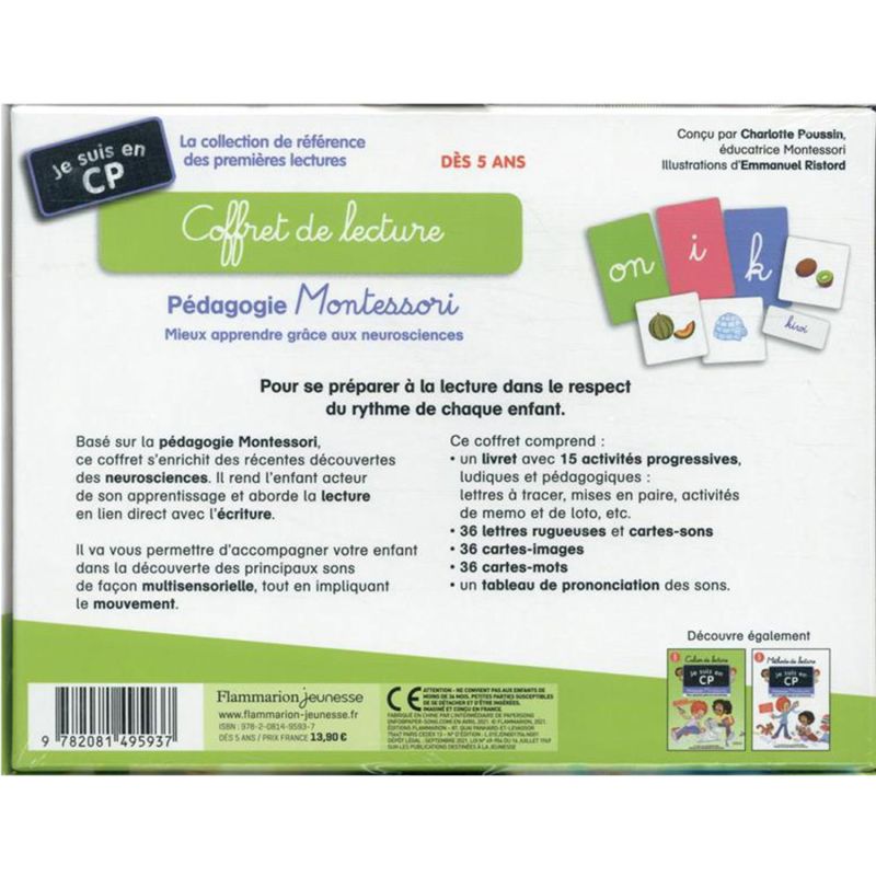 Pour se préparer à la lecture dans le respect du rythme de chaque enfant. Ce coffret comprend : - un livret avec 15 activités progressives ludiques et pédagogiques : lettres à tracer, mises en paire, activités de memo et de loto, etc. - 36 lettres rugueuses et cartes-sons - 36 cartes-images - 36 cartes- mots - un tableau de prononciation des sons.