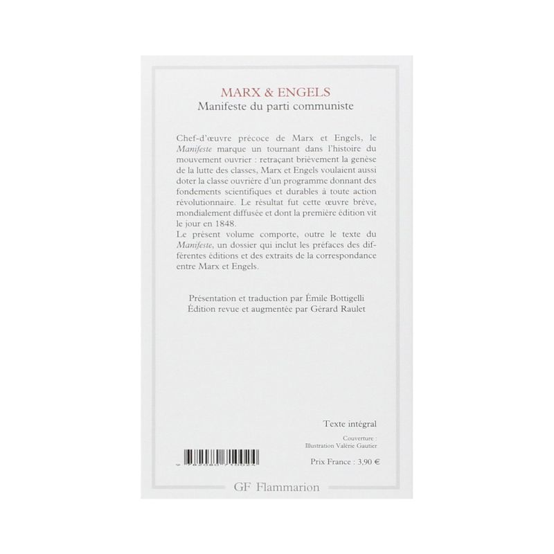 An early masterpiece of Marx and Engels, the Manifesto marks a turning point in the history of the workers' movement: briefly retracing the genesis of the class struggle, Marx and Engels also wanted to endow the working class with a program giving foundations scientific and sustainable to any revolutionary action. The result was this short work, distributed worldwide and whose first edition appeared in 1848. The present volume includes, in addition to the text of the Manifesto, a file which includes the prefaces of the different editions and extracts from the correspondence between Marx and Engels .