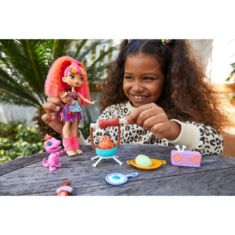 Discover the Club des Cavernes, a group of children from Prehistory with a hair-raising personality and far ahead of their time! With Club des Cavernes dolls and boxes, kids can explore a world of extraordinary adventures with their favorite prehistoric characters, like Emberly and Roaralai. Each Club des Cavernes box includes a wild-looking doll, a prehistoric pet and themed accessories. You can help Roaralai care for her saber-toothed tiger baby or help Emberly prepare the very first barbecue in history. With Club des Cavernes dolls and boxes, children can travel back to prehistoric times to explore a whole world of adventures! Children from 4 years old can imagine the life of their favorite cave child or collect the whole group for even richer stories. Items sold separately. Some products may not be marketed. Colors and decorations may vary.