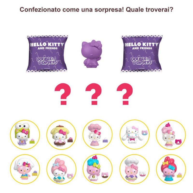 These collectible Color Reveal Sanrio® figures with color change have a multitude of nice surprises in store! Each bag contains 1 Color Reveal Hello Kitty® figure, 1removable hat, 1donut or cake and 1 collection guide. Each collectible Color Reveal Hello Kitty® figure comes in a milk bottle-shaped package. What Hello Kitty® theme is waiting for you? Check out the Color Reveal Hello Kitty® figures with a chef's hat, an ice-shaped hat or featuring characters like Keroppi, My Melody and others. Fill the water bottle and dip the Hello Kitty® figure into it for a fun surprise. Watch the painting dissolve to reveal a "new" Hello Kitty character! Collect them all! Items sold separately. Some products may not be marketed. Colors and decorations may vary.