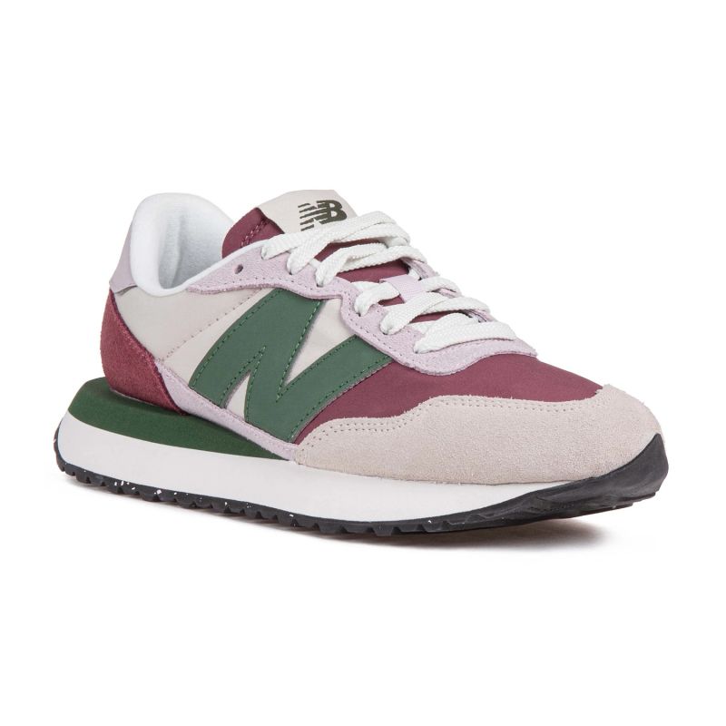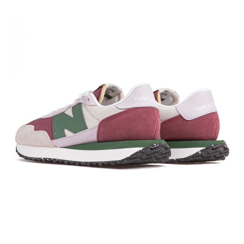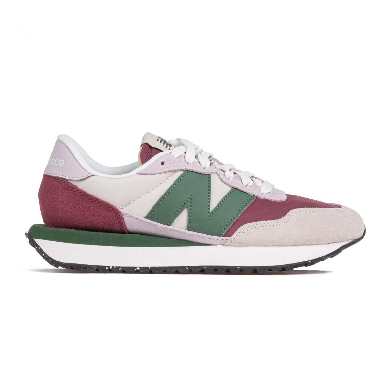 The 237 is a contemporary reinterpretation of the racing heritage of the '70s that fuses a range of heritage design inspirations into a deceptively simple and exceptionally versatile contemporary silhouette. An EVA midsole, herringbone outsole, and contoured upper provide a classic launching point for modern flourishes like oversized N branding, elongated midsole length, and alligator-inspired reinforcements and fenders. One might consider the cohesiveness of the familiar 237 vibe and over-the-top updates as the easiest way to make a statement.