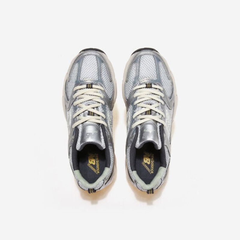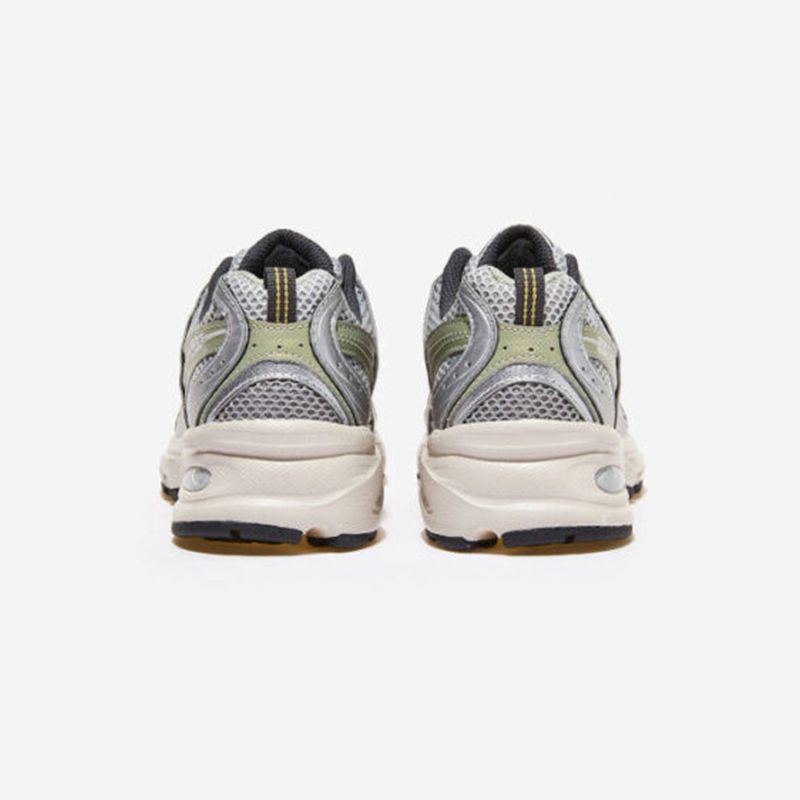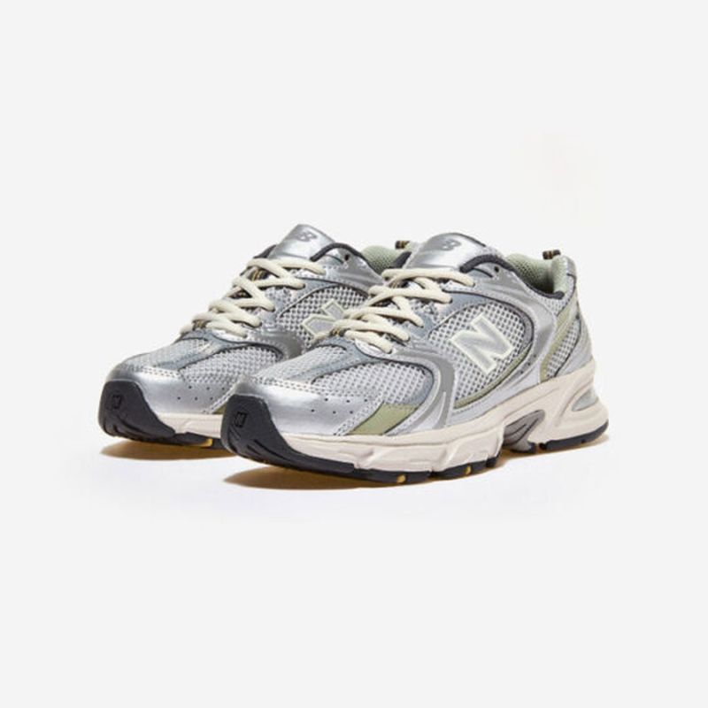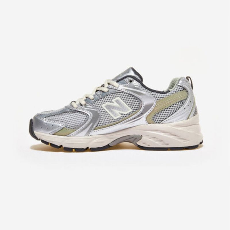 New Balance 530 Running Shoe. Colours: Silver, Olive green, White. Reference: MR530KMW. The new New Balance 2023 530 collection is inspired by vintage running shoes. This casual shoe combines casual style with modern technology. Featuring a breathable mesh upper on a midsole with ABZORB cushioning, the 530 offers total comfort. Details. - Synthetic and mesh upper.