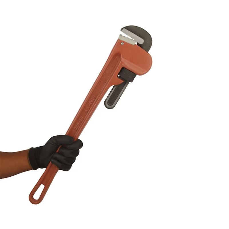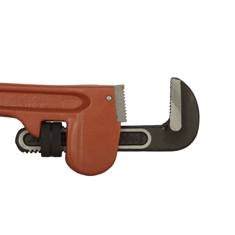 The hose wrench is an adjustable wrench that locks the frame in such a way that any forward pressure applied to the handle reinforces the jaw tightening.