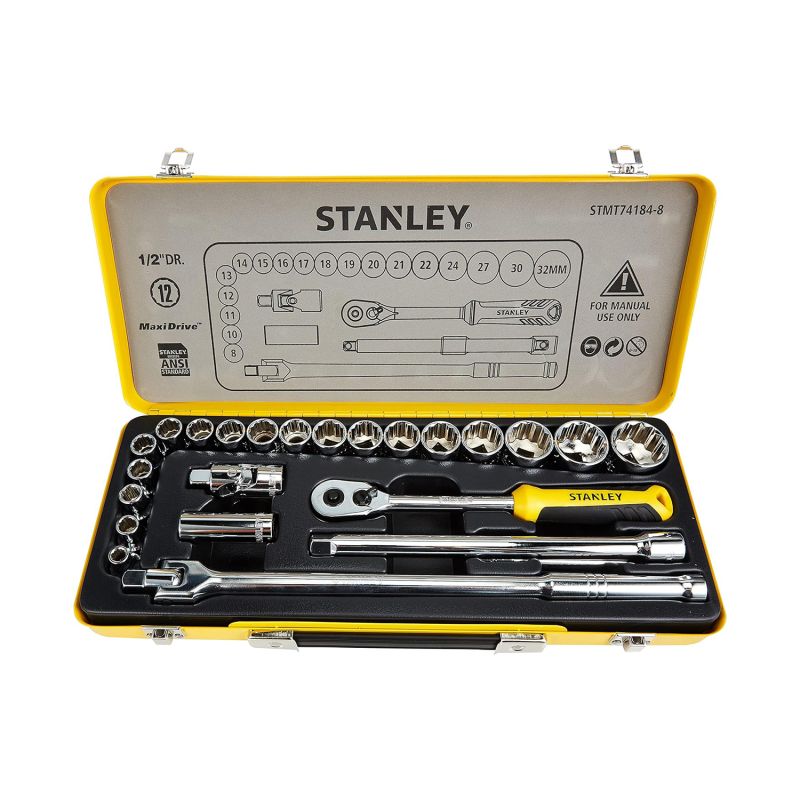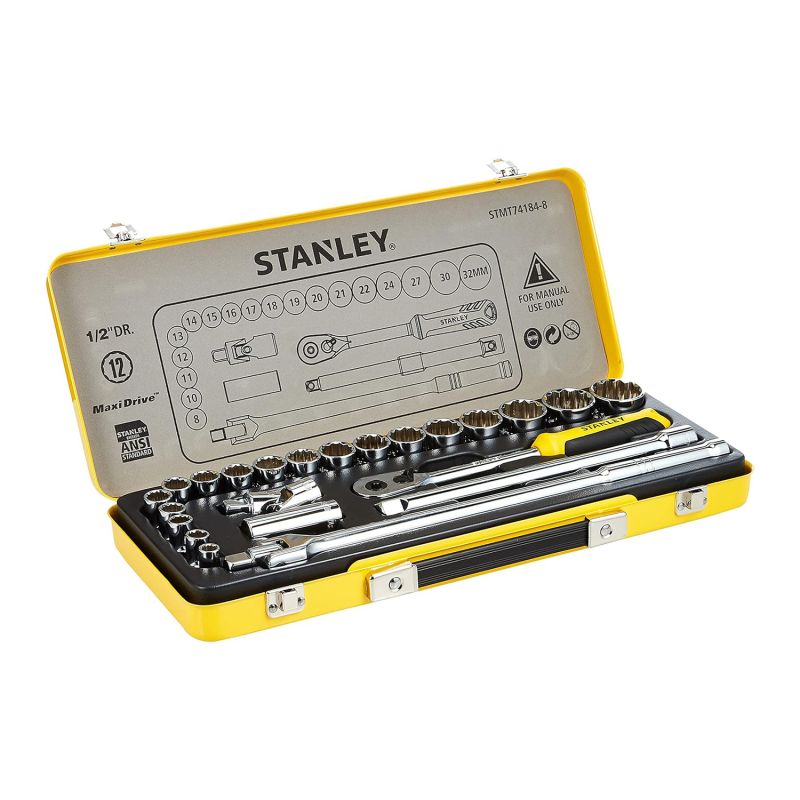 Socket set in a tin box for a harsh working environment. Designed to withstand the rollover of light to medium vehicles in garages.
