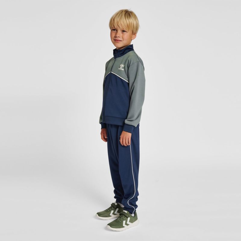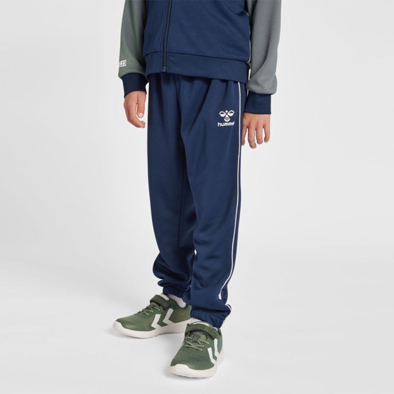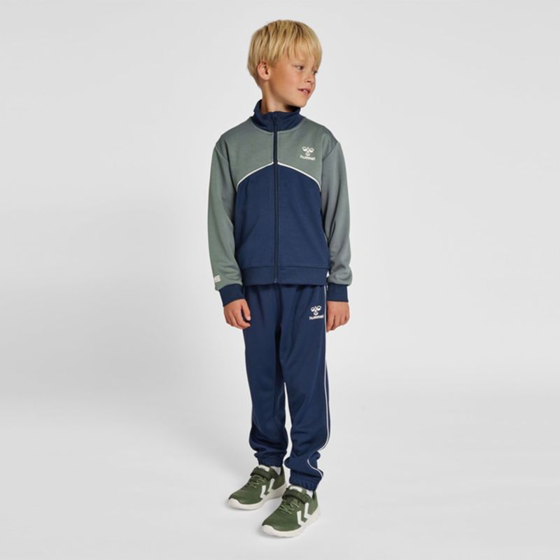 The hmlLUBAGO tracksuit is made of durable interlock fabric, ideal for small assets. Stitched with contrasting color panels, this hummel® tracksuit is equipped with a zipper and drawstring waistband for a comfortable fit. It is completed with piped trims and a Bumblebee® logo print.
