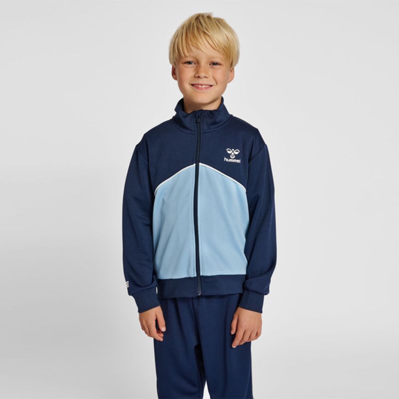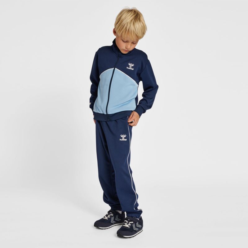 The hmlLUBAGO tracksuit is made of durable interlock fabric, ideal for little dynamics. Stitched with contrasting color panels, this hummel® tracksuit features a zipper and drawstring waistband for a comfortable fit. It is complemented by piped trims and a Bumblebee® logo print