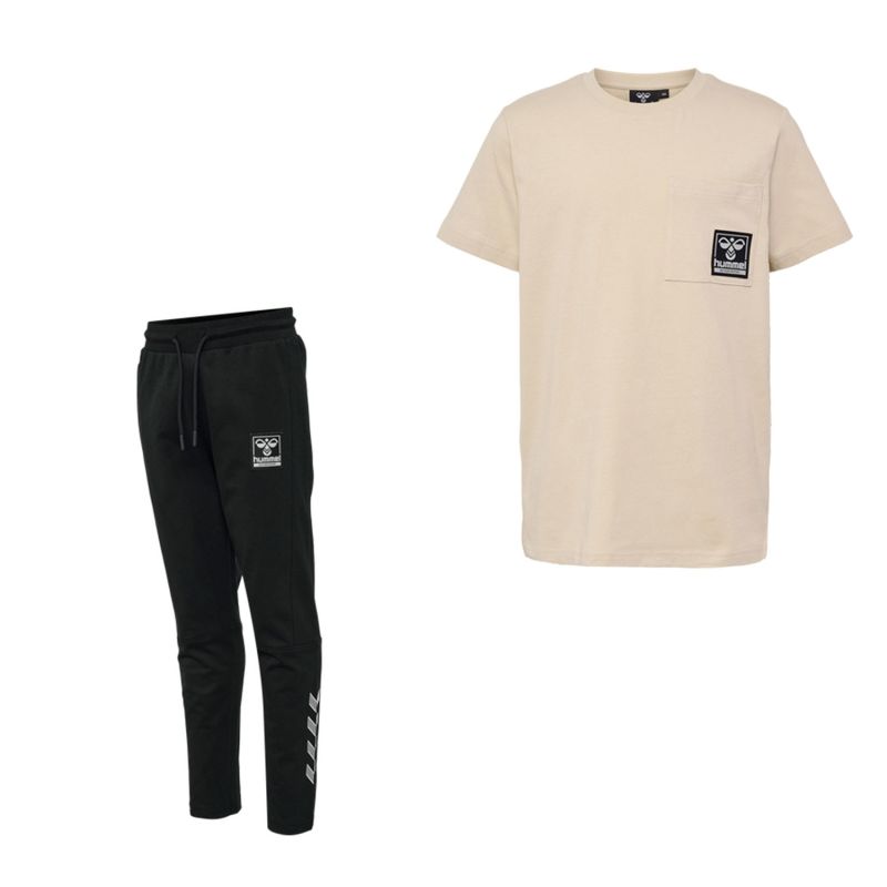 The hmlROCK and hmlYUKIO set offers your little adventurer a clothing option that is stylish, comfortable, and eco-friendly at the same time. The hmlROCK T-SHIRT S/S, made of organic cotton jersey fabric, offers high elasticity for unrestricted play, with a design including a round neck, short sleeves and a logo badge on the chest pocket, all certified by the STANDARD 100 by OEKO-TEX® label guaranteeing the absence of harmful substances. The hmlYUKIO PANTS, made from a blend of organic cotton and recycled polyester sweatshirt fabric, are soft to the touch and warm, with an adjustable drawstring at the waist, a zippered pocket on the right side, a logo badge and classic chevrons on the legs, also certified with the STANDARD 100 by OEKO-TEX® label for the absence of harmful substances.