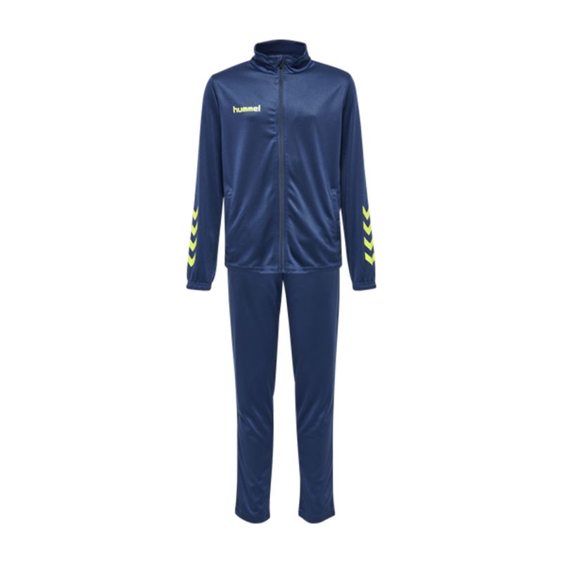 The pants in this hummel track suit set feature two side pockets and an elasticated waistband with drawstring for a secure fit.