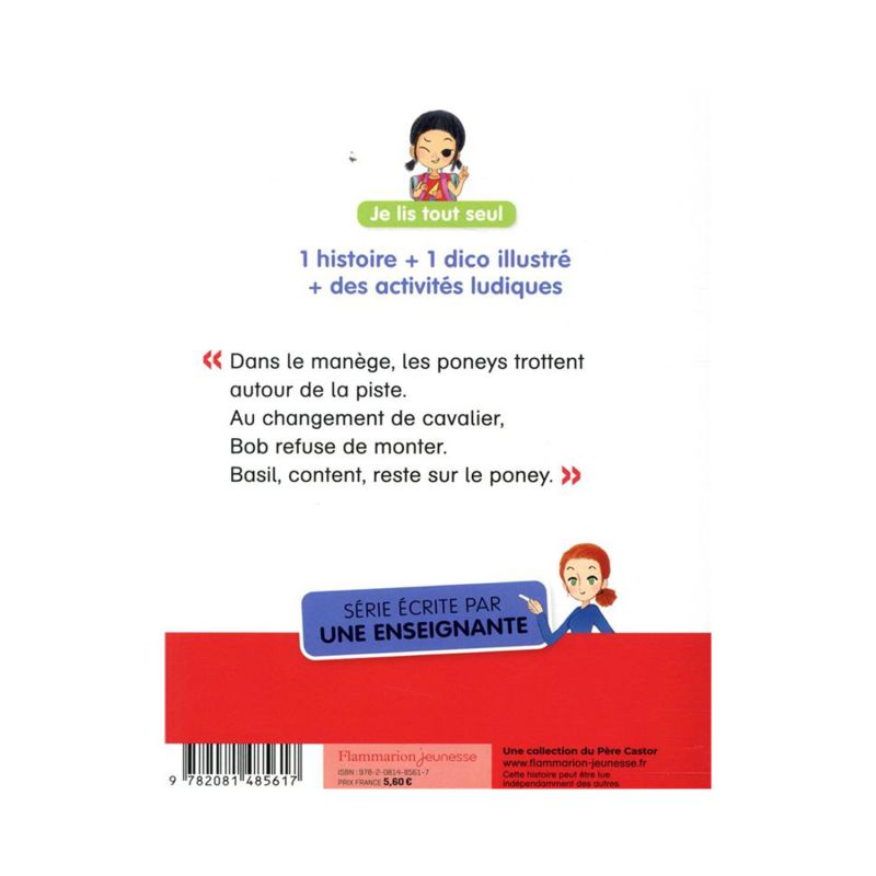 “In the arena, the ponies trot around the track. At the change of rider, Bob refuses to ride. Basil, happy, stays on the pony. 1 story + 1 illustrated dictionary + fun activities.