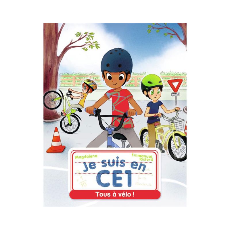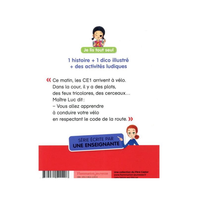 “This morning, the CE1s arrive by bike. In the yard, there are studs, traffic lights, hoops… Maître Luc says: – You are going to learn to ride your bike while respecting the highway code. » 1 story + 1 illustrated dictionary + fun activities.