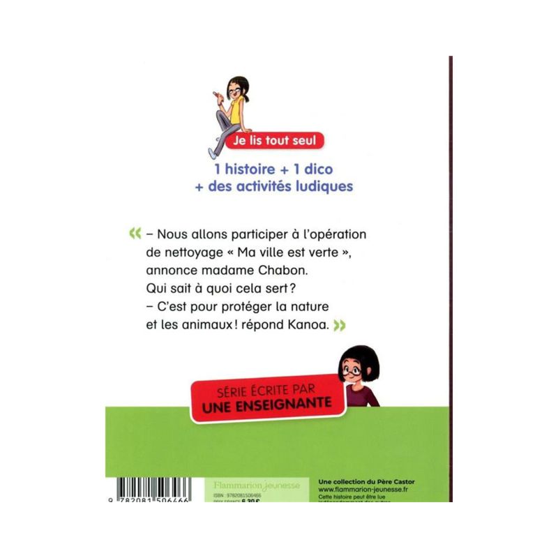 “– We are going to participate in the clean-up operation Ma ville est verte, announces Ms. Chabon. Who knows what it's for? – It's to protect nature and animals! Kanoa replies. » 1 story + 1 dictionary + fun activities.