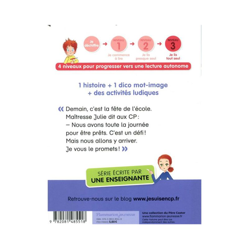 “Tomorrow is the school party. Mistress Julie said to the CPs: — We have all day to be ready. It's a challenge ! But we will get there. I promise you ! » 1 story + 1 word-image dictionary + fun activities.