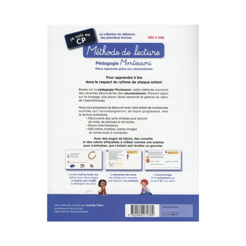 To learn to read while respecting the rhythm of each child. Based on Montessori pedagogy, this method is enriched by recent discoveries in neuroscience. Based on language, it places sensory and gestural awakening at the heart of learning. We invite you to discover with your child many activities that will accompany him, in a progressive way, towards independent reading. • Discovery of simple sounds and reading words, sentences and texts. • Interim balance sheets. • 500 movable letters, picture cards and word cards to handle. With pages of balance sheets, tips and erasable flaps to use as a slate for training, whether the child is right-handed or left-handed