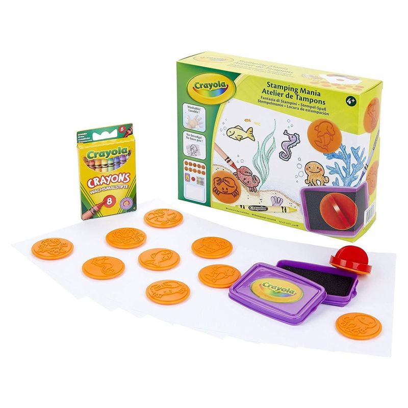 Set contains: 10 stamps, 8 crayons, 1 ink pad, 1 stencil holder, 10 blank sheets.