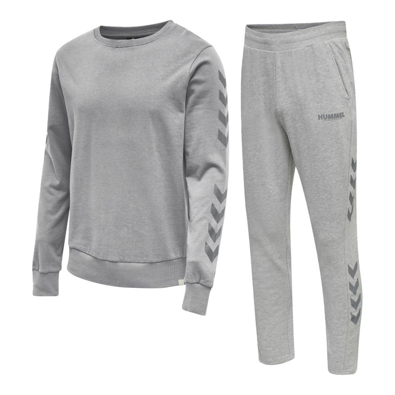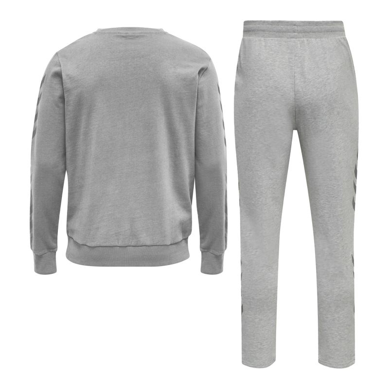 The set hmlLEGACY CHEVRON SWEATSHIRT Ref: 212572-2006 and hmlLEGACY TAPERED PANTS Ref: 212567-2006 is a men's tracksuit set that offers you comfort and style. It consists of a cotton fleece sweatshirt with a brushed back and cotton fleece sweatpants with a brushed back. Both products are available in grey and white respectively. They are also made of recycled polyester, which offers lightness and durability. They also feature a Formula 1-inspired design with contrasting T7 stripes on the sleeves and legs, as well as the hummel logo on the chest and hip for a sporty touch.