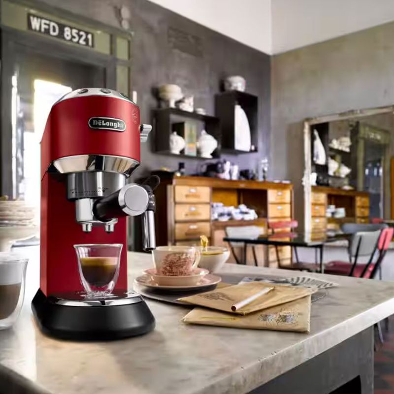 The De'Longhi Dedica Style EC 685.R is a semi-automatic espresso machine with a sleek and compact design, perfect for home coffee lovers. Here are its main features: