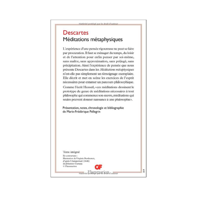 The experience of rigorous thinking cannot be done vicariously. It is necessary to spare time, leisure and attention to finally think for oneself, without master, without approximation, without prejudice, without haste. Thus the thought experiment that Descartes presents to us in the Metaphysical Meditations is not simply an exemplary testimony. It describes and stages the exercises of the mind necessary to begin a philosophical journey. As Husserl writes, "these meditations draw the prototype of the kind of meditations necessary for any philosopher who begins his work, meditations which alone can give rise to a philosophy."