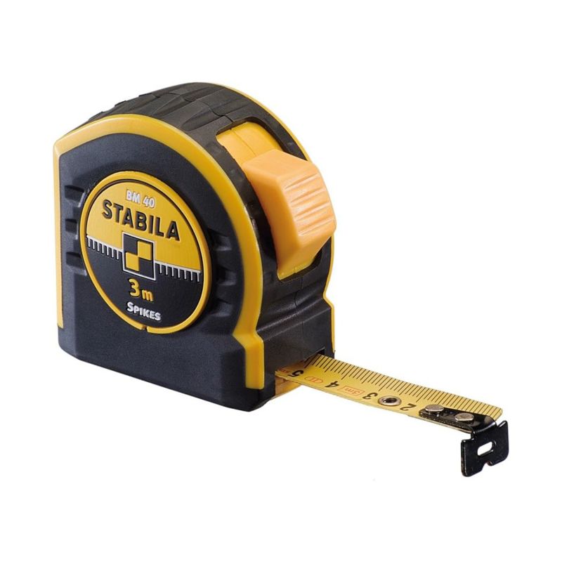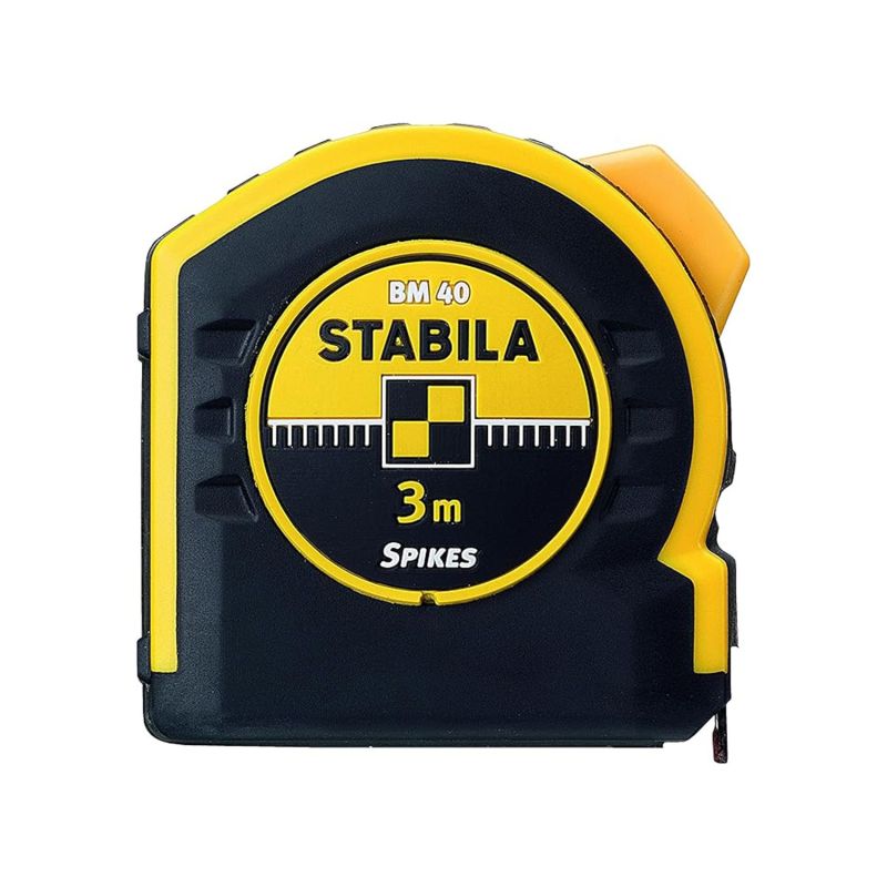 A robust tape measure for professionals, with identical graduation on both sides for perfect readability. Its wear-resistant surface ensures an exceptional service life. The STABILA Spikes hook ensures a good hold of the tape. The BM 40 is available in several lengths up to 10 meters