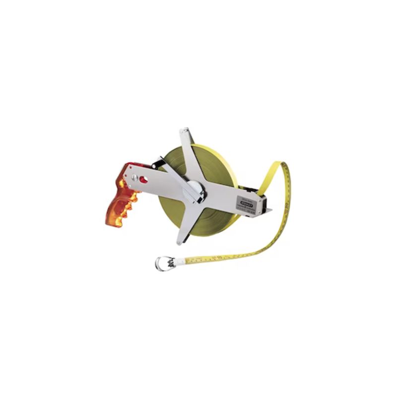 Ergonomic handle molded in transparent synthetic material for good maneuverability. Tape with large removable loop (DIN standard) and fully retractable hanging paddle. Removable anchor tip. Interchangeable ribbon and handle for right- and left-handed users. Replacement tape available (1-34-734 and 1-34-737). Supplied without case.