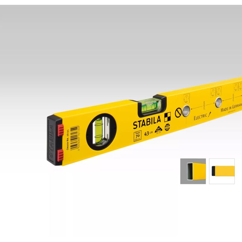 This spirit level saves electricians a lot of time: the holes make it possible to mark horizontal and vertical distances for electrical outlets and switches in one go. The non-slip pads on the end caps ensure a secure fit on all surfaces. Innovative solutions for specific challenges: STABILA's specialty.