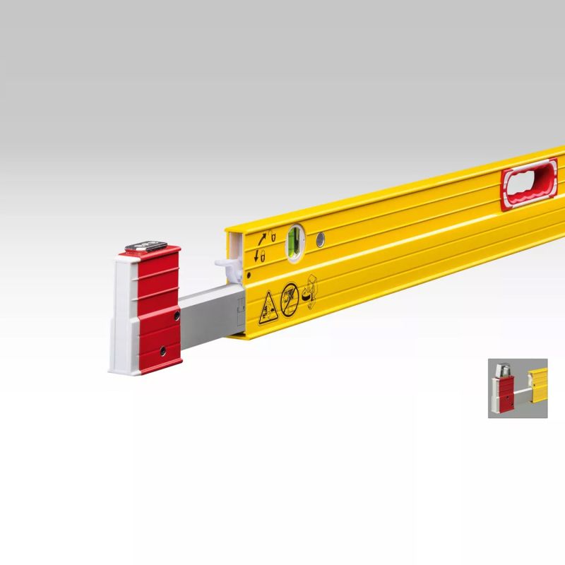An extremely long and stable telescopic spirit level. Clamping eccentrics ensure accurate measurements in all positions. Two pads on the upper sole compensate for any irregularities in the surface to be measured, for optimal precision. With its two plug-in dividers, this model is ideal for reinforcement work on wooden structures or for very uneven surfaces, such as curved wood panels. A perfect expression of the innovative STABILA design.