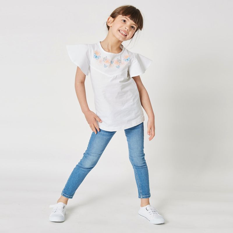 The design of this blouse highlights flared sleeves that bring a touch of femininity and lightness to the outfit. The bright white Optic color gives a chic and refined look to this blouse. Your little girl will be radiant in this classic shade.