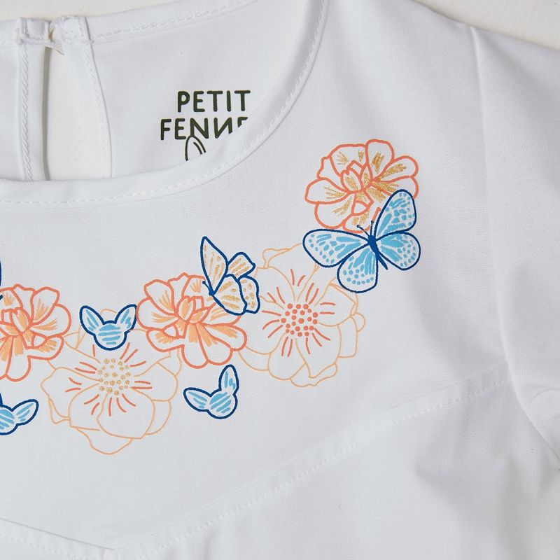 Opt for purity and elegance with our blouse girl flared sleeves in poplin color White Optic. Made from 100% high-quality cotton, this blouse offers optimal comfort while adding a touch of sophistication to your child's wardrobe.