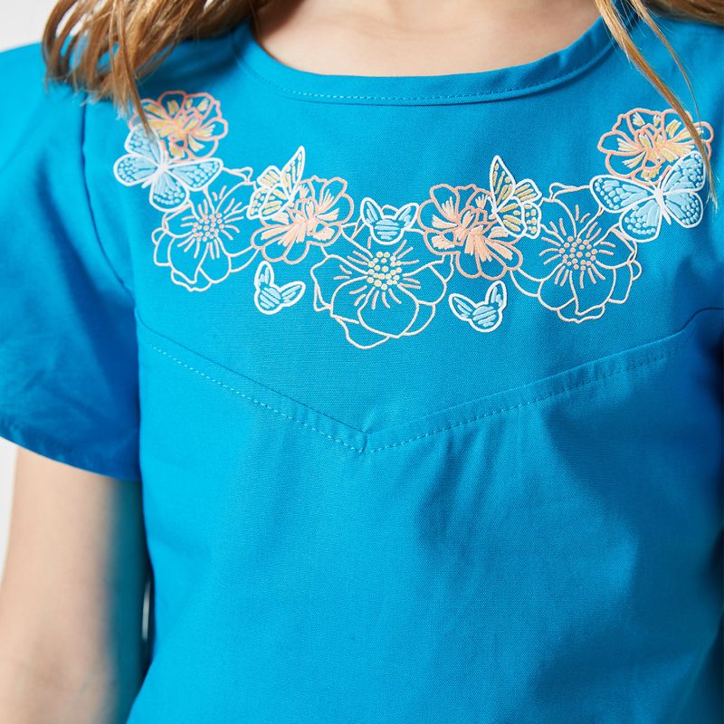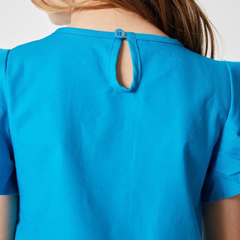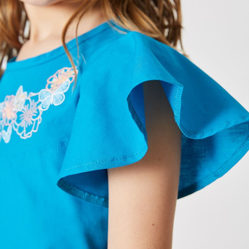 Add a touch of refreshing style to your little girl's wardrobe with this Ocean Blue flared sleeve blouse in 100% cotton poplin. Combining comfort, quality and elegant aesthetics, it will be a perfect choice for all occasions.