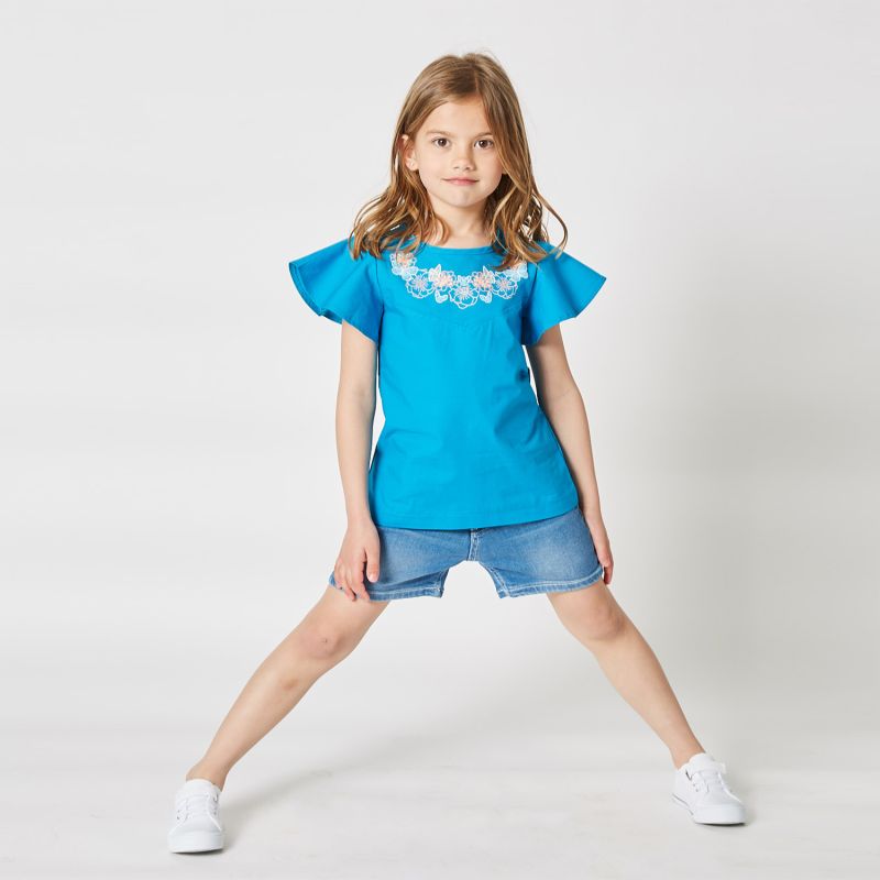 The design of this blouse highlights flared sleeves that bring a touch of femininity and lightness to the outfit. The Ocean Blue color, inspired by the waves of the ocean, gives a bright and refreshing appearance to this blouse. Your little girl will be dazzling in this captivating shade.