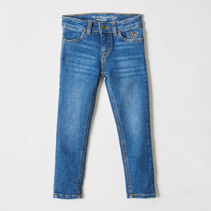 Versatile and easy to match, these jean pants can be paired with a variety of tops, from casual t-shirts to dressier blouses. The embroidery of the Petit Fennec brings a playful note and draws attention to the trousers.