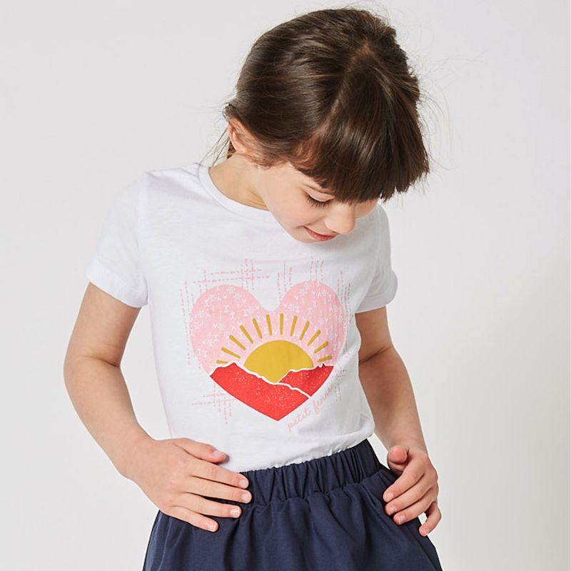 Offer your little fashionista this T-shirt girl print heart of Petit Fennec, combining style, comfort and exceptional quality. Add a dose of love and tenderness to her wardrobe with this lovely white cotton T-shirt.