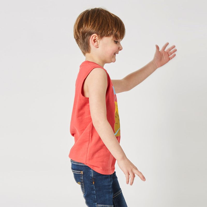 With a sleeveless cut and a clear neckline, this tank top offers great freedom of movement to your child, ideal for hot days and dynamic activities. It is perfect for summer getaways, outdoor games or moments of relaxation.