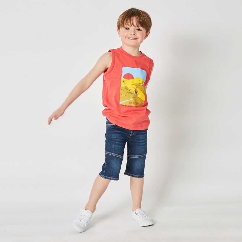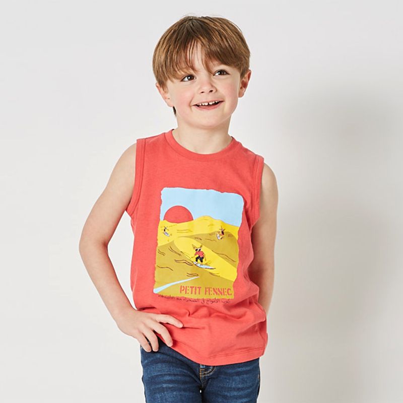 Prepare your little boy for sports getaways with this Petit Fennec red ski dune print boy tank top. Combining comfort, quality and dynamic aesthetics, it will be its ideal companion for unforgettable summer adventures.