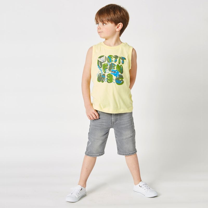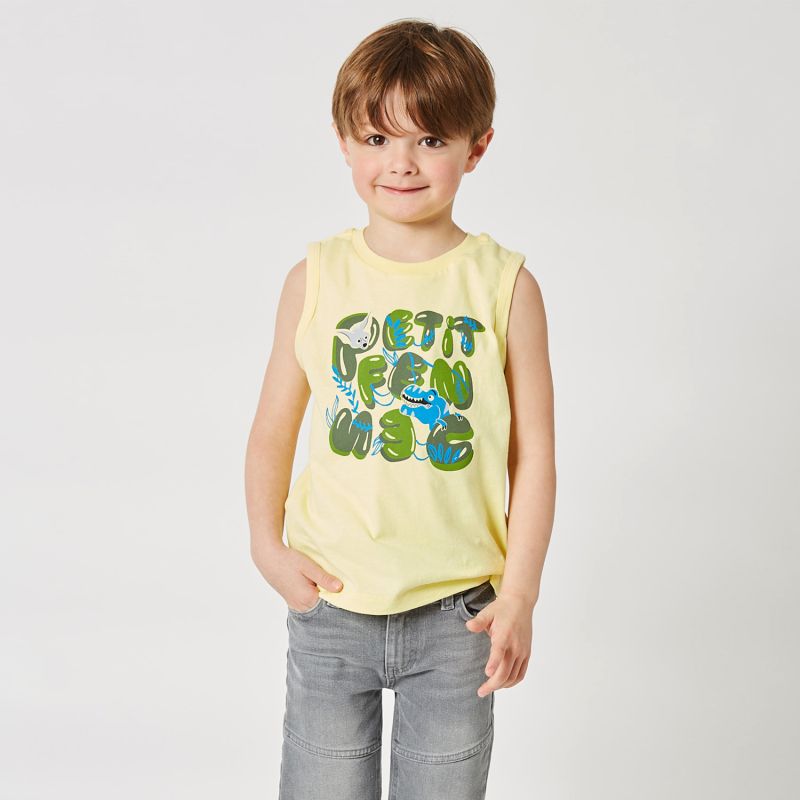 Add a dose of joy and play to your little boy's wardrobe with this fun scene printed boy's tank top in light yellow from Petit Fennec. Combining comfort, quality and fun, it will be the ideal companion for your child's summer adventures.