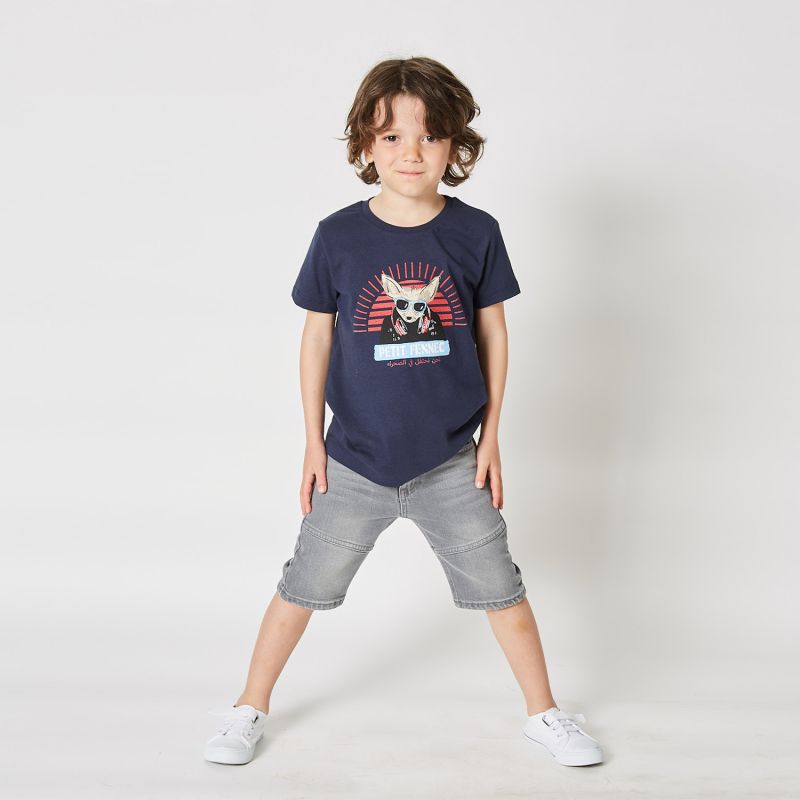 Give your little boy a casual and trendy look with our gray denim pants, embellished with embroidery highlighting the charming Petit Fennec. This pantacourt combines comfort and style, with a playful touch brought by the embroidery.