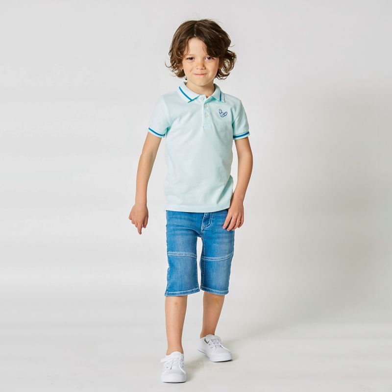 Add a touch of style and freshness to your little boy's wardrobe with this light blue cotton piqué boy's polo shirt. Combining comfort, quality and charming aesthetics, it will be the perfect choice for all occasions.