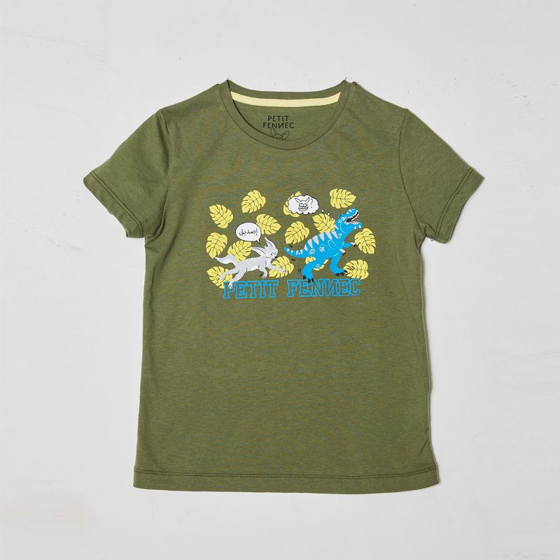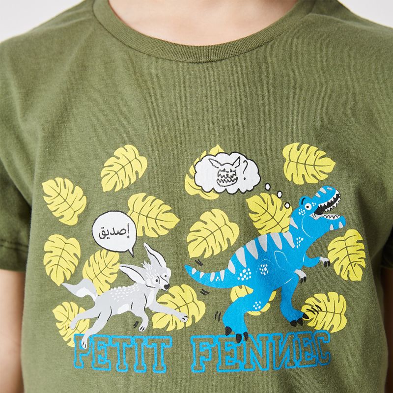 Add a dose of joy and adventure to your little boy's wardrobe with this fun scene printed T-shirt in khaki from Petit Fennec. Combining comfort, quality and fun, it will be the perfect choice for your child's moments of play and discovery.