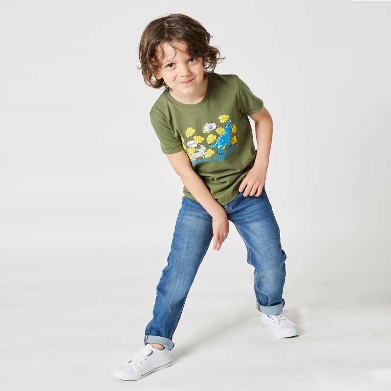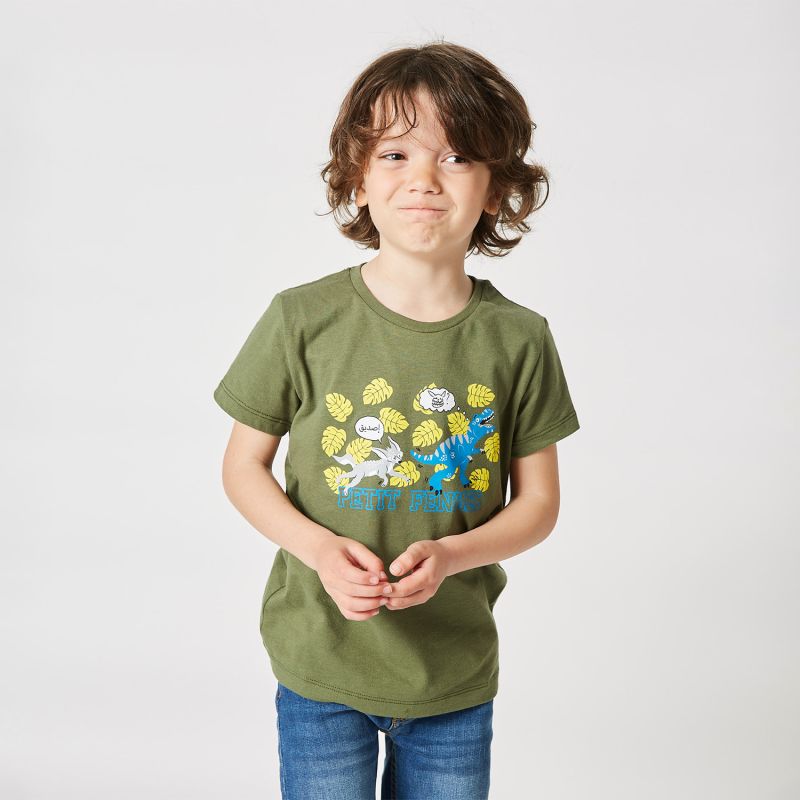 T-shirt boy printed fun scene KAKI
