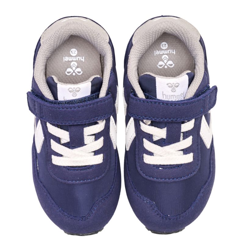 Designed with retro style in mind, the INFANT REFLEX is the perfect shoe for your little one while they explore. The cut-out Velcro closure of these hummel® sneakers provides a perfect fit and ensures quick donning and removal, giving them more time to go out and play. The lightweight design won't weigh them down and the soft sole will keep them comfortable with every step. We recommend that these sneakers fit a normal to narrow width cut. When choosing a child's size, we recommend leaving 1-1.5 cm of growth space with these shoes. Please refer to our size chart for more information.