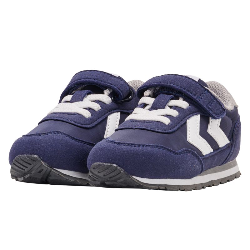 Designed with retro style in mind, the INFANT REFLEX is the perfect shoe for your little one while they explore. The cut-out Velcro closure of these hummel® sneakers provides a perfect fit and ensures quick donning and removal, giving them more time to go out and play. The lightweight design won't weigh them down and the soft sole will keep them comfortable with every step. We recommend that these sneakers fit a normal to narrow width cut. When choosing a child's size, we recommend leaving 1-1.5 cm of growth space with these shoes. Please refer to our size chart for more information.