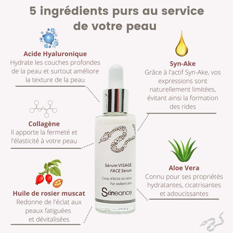 The FACE SERUM is the perfect addition to our range, designed to maximise your results. Fortified with 2% pure snake venom peptides, SYN-AKE®, this serum intensifies the effectiveness of your usual cream. Its powerful formula revitalizes the epidermis, amplifying the beneficial effects of the cream, making the FACE SERUM essential to optimize the action of SYN-AKE® and visibly reduce your wrinkles.