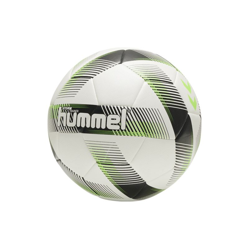 Developed with you in mind, the STORM TRAINER FB displays the best of hybrid and kinetic design, with high-density foam, for extra softness, under 100% textured PU with heat-sealed seams for reduced moisture absorption and reduced air resistance. The coiled bladder of this hummel® soccer ball retains the perfect spherical shape with a reduction in impact on your foot. This ball is specially developed for training on grass, artificial and indoor fields.