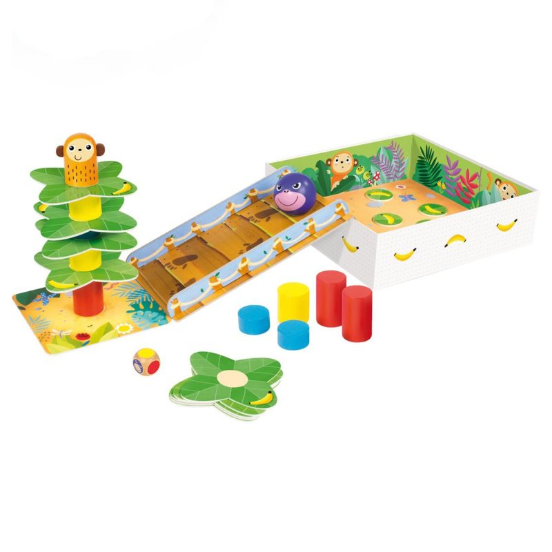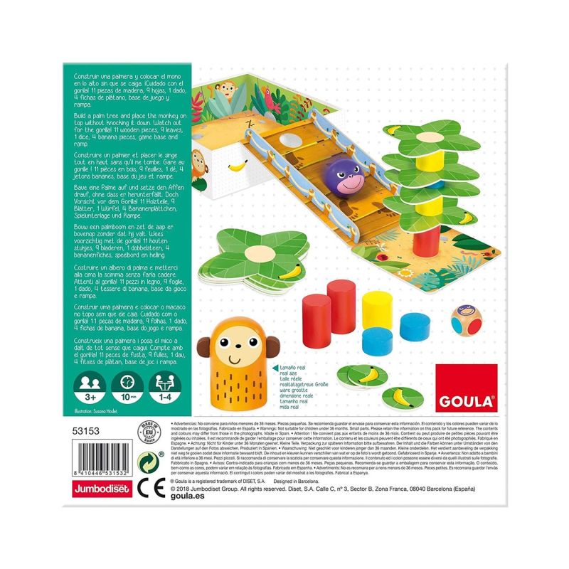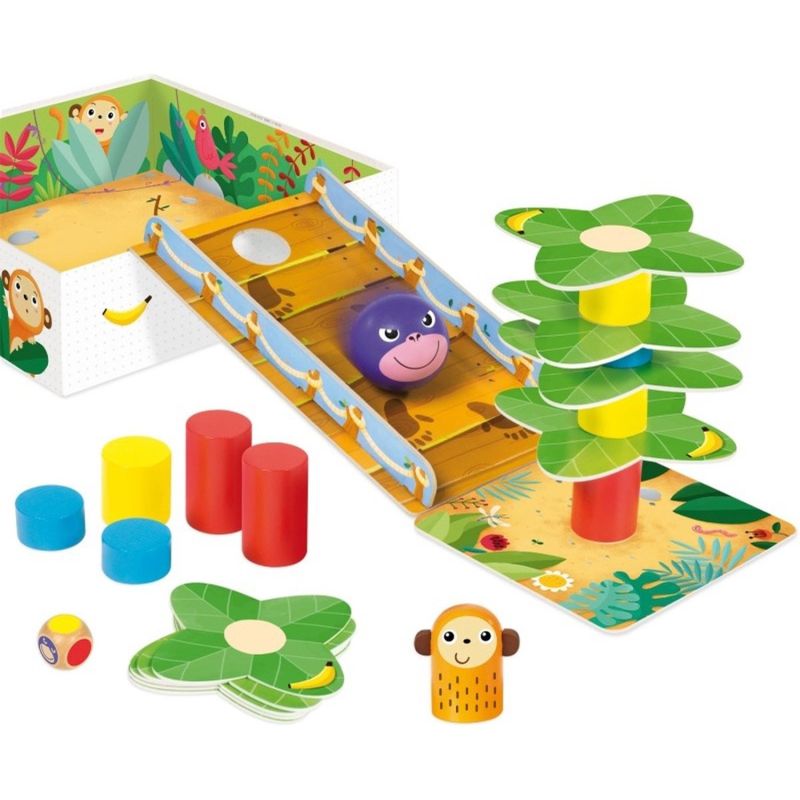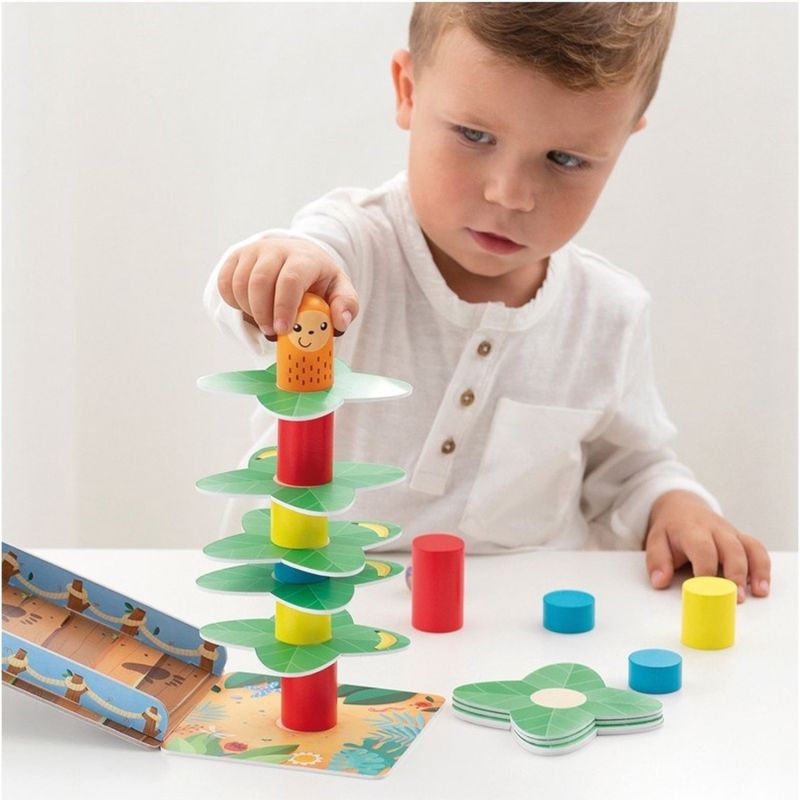 Est un jeu d’équilibre qui favorise la motricité. Construisez un palmier et placez le singe sans que le palmier ne s’effondre ou ne soit renversé par le gorille. Il y a 3 modes de jeu différents disponibles : ensemble, l’un contre l’autre ou en jeu libre.