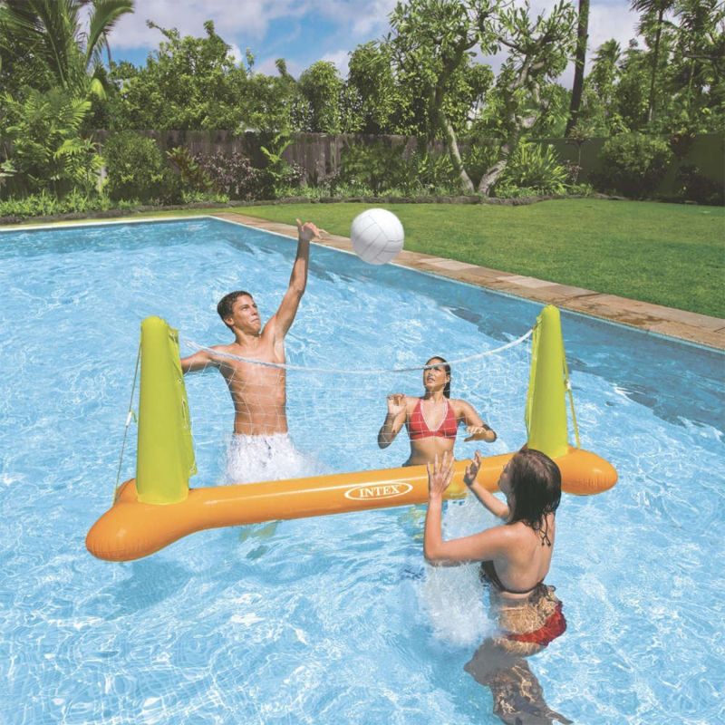 Jeu gonflable Intex VOLLEY BALL dimensions 239 x 64 x 91cm. Facile et rapide à installer, aucun assemblage requis, flotte sur l'eau, structure renforcée, livré avec un ballon de volley ball gonflable.