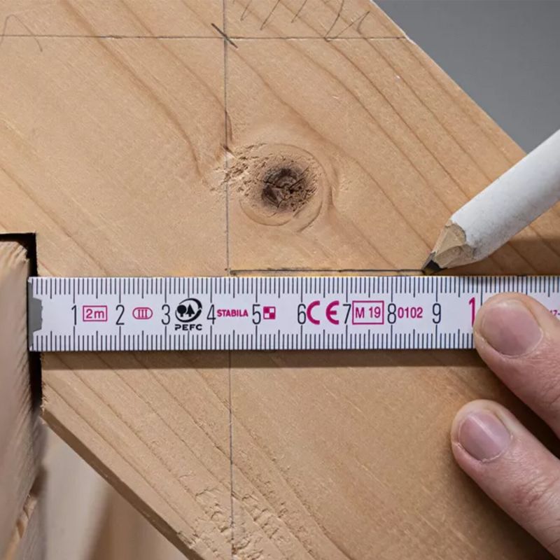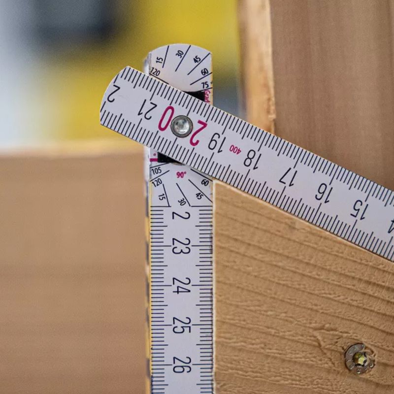 Qui n’a pas connu ça ? Vous êtes sur le chantier ou à l’atelier et devez tracer un angle de 45 ou 60°, mais vous n’avez aucun rapporteur d’angle sous la main. Dans ces situations, ce mètre pliant est idéal pour vous : avec son schéma angulaire intégré, il vous permet de définir et reporter les angles fréquemment utilisés sur le chantier, et ce en toute rapidité et simplicité. Le mètre pliant est fabriqué en bois de hêtre de qualité issu de l’exploitation durable des forêts (PEFC). Les articulations en tôle d’acier durcies à ressort d’acier intégré garantissent une grande durabilité et un enclenchement précis. Mètres pliants STABILA – toujours une bonne solution.